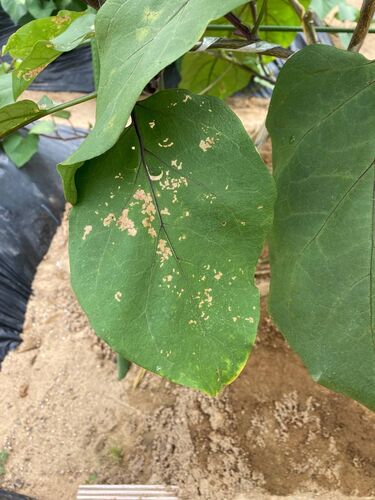 ナスの葉っぱがスカスカに。 テントウムシダマシの仕業らしいというので、 葉の裏を探ると・・いるわいるわ。 対策として、チンゲンサイのアブラムシ対策で買った「ベニカ水溶剤」が使えるらしい。 先月はカメムシも結構いて手で落としていましたが、カメム…